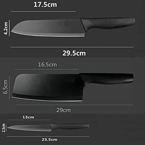 DHVSAM Kitchen Knife Set 3 Piece Chef’s Knives Set Meat Cleaver, Shantou Knife, Fruit Paring Knife Full-Tang Knives Set (Knife Set Black)