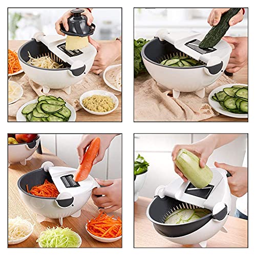 DIJITRA FAB 9 in 1 Multifunction Vegetable Cutter with Drain Basket Magic Rotate Vegetable Cutter Portable Slicer Chopper Grater Kitchen Tool Vegetable Grater