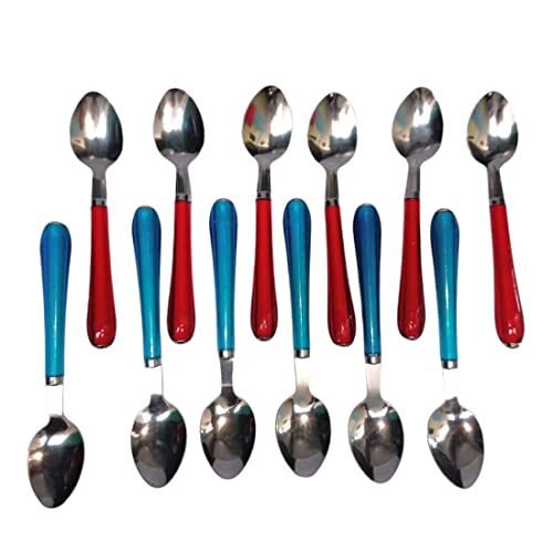 Be the first to review “Dining Table Spoon 12-Pieces Set for Kitchen and Dining Table Steel with Shiny Red and Blue Plastic Handle Spoon Set for Home and Kitchen (Set of 12) Steel Table Spoon Set”