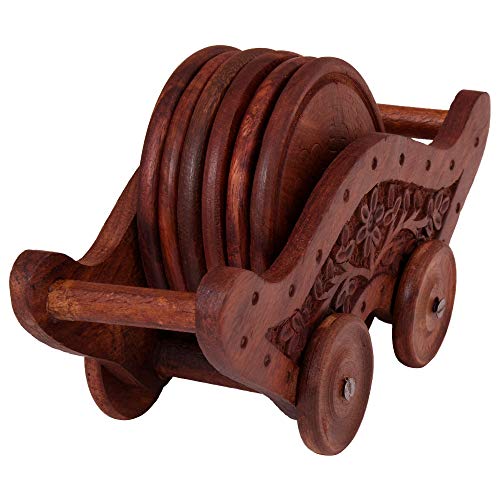 diollo Handmade Wood 6 Round Coasters and Wooden Holder Table Top Décor Accessories
