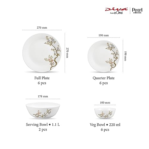 Be the first to review “Diva by La Opala, Pearl Collection, Opal Glass Dinner Set 20 pcs, Zen Garden, White”