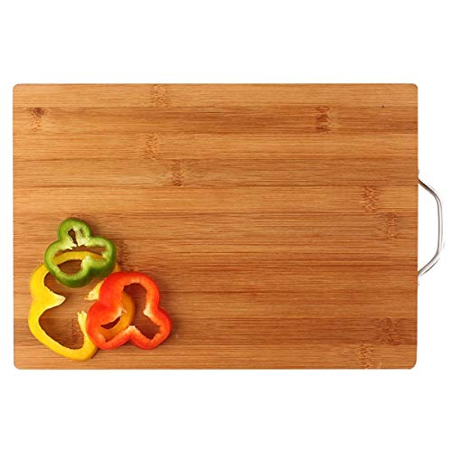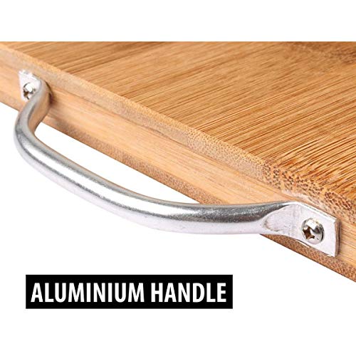 Divinezon Wooden Bamboo Kitchen Chopping Cutting Slicing Board for Vegetables, Fruit, Cheese and Meats with Handle (29 x 39 x 1.8 cm, Brown)