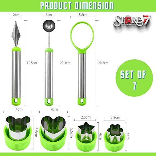 🍉NEWEST DESIGN & PACKAGE INCLUDE- 7 Pcs Pack fruit & vegetable multipurpose cutter shaper tools set (Package included: 1* Melon Baller Tool, 1* Fruit Carver Tool, 1* Pulp Remover Tool, 1* Mickey Shape Tool, 1* Star Shape Tool, 1* Flower Shape Tool, 1* Heart Shape Tool). Super easy to use even if for children. Definitely a must have kitchen tool set!!