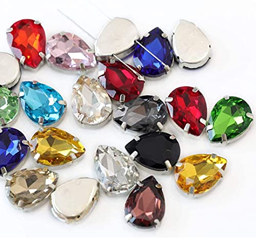 Diy Crafts 15243 Glass Sew on Rhinestones With Silver Claw Drop Crystal Sew on Claw Rhinestone Glitter Stones, Pack of 120 80×3, 8x13mm (Gold)