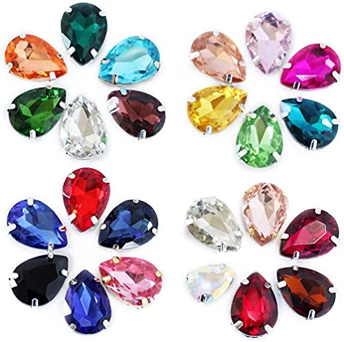 Diy Crafts 15243 Glass Sew on Rhinestones With Silver Claw Drop Crystal Sew on Claw Rhinestone Glitter Stones, Pack of 120 80×3, 8x13mm (Gold)