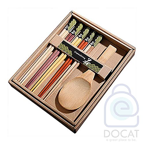 Be the first to review “DOCAT Natural Wooden 5 Pair Chopsticks with 1 Spoon Gift Set Box, Flatware Creative, Non-Painted Solid Reusable Chopsticks Set”