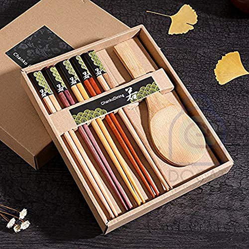 Package includes 5 Pairs of Wooden Chopsticks and 1 Rice Serving Spoon.