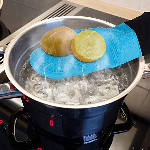 WATERPROOF AND STEAM RESISTANT -Unlike regular fabric oven gloves, our silicone Oven Gloves are waterproof and won’t absorb liquids. So hot liquids won’t soak through and scald your skin as they would with other materials. You can even use our gloves to retrieve items from hot water, And won’t burn your hands.