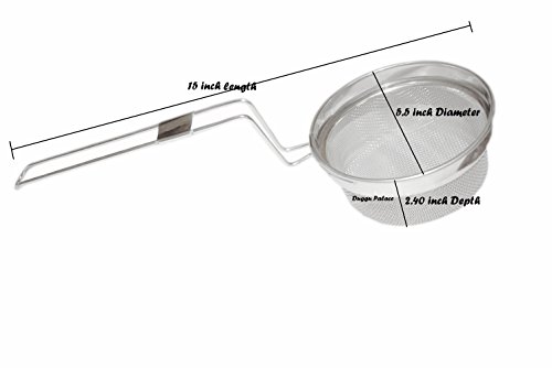 Total length of Strainer: 15 inch, The bowl’s diameter: 5.5 inch; The bowl’s depth: 2.40 inch