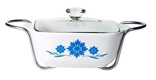 DWELL SIX | Cornflower Traditions 9″ Square Casserole Baker with Glass Lid & Table Serving Stand