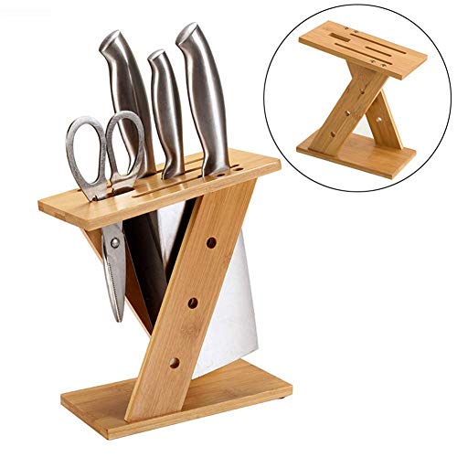 Stylish wooden block: Bamboo Material,Moisture proof,stable base,Saves space on your worktop and safely stores your knives,easy to clean..