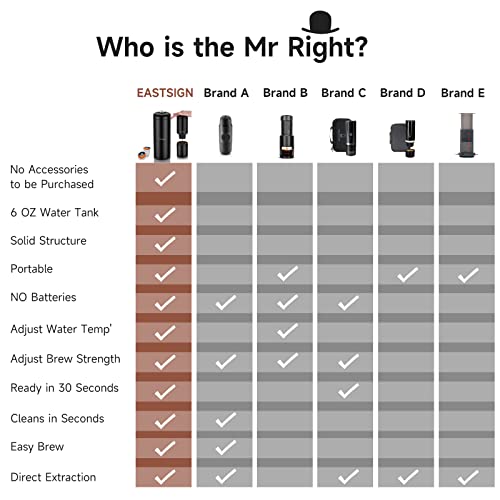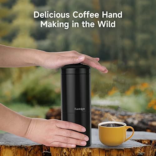 QUALITY MATERIAL: Eastsign portable coffee maker uses a 100% BPA free material with the same safety level as baby bottles, and all metal parts are made of food-grade 304stainless steel. The water pump stick is reinforced and it is very sturdy and durable.