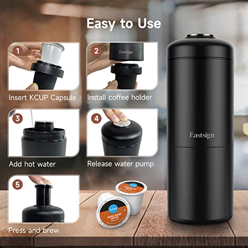 A BREEZE TO CLEAN: For day to day use,a simple rinse is enough. Eastsign travel coffee maker is design with all detachable components.The whole body can be washable. When necessary,clean the Kcup capsule holder with running water after each brewing.