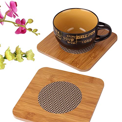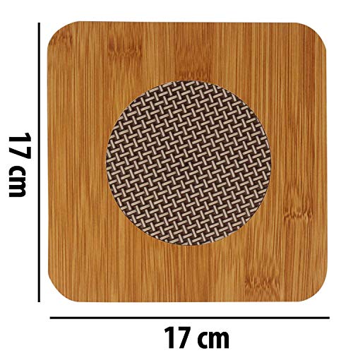 EASY SHOPE Square Shape Heating Insulation/Resistant Natural Bamboo Wooden Coaster Heat Table Ware Pad Place mat for Hot Coffee,Bowl & Tea Cup, Office, Home & Kitchen Dining Pan Pot Holder, 1-pcs