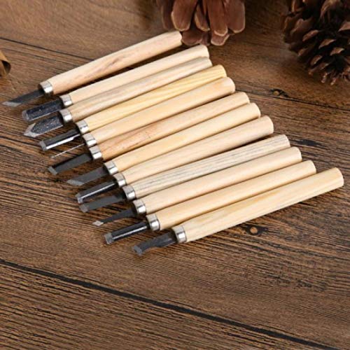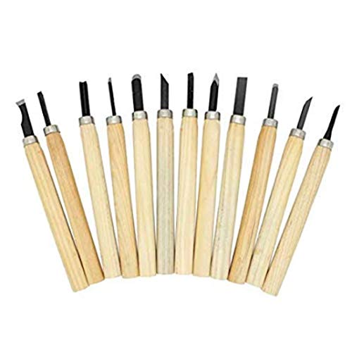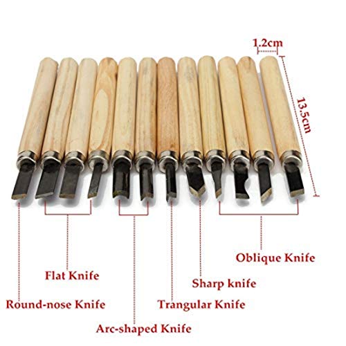Material: Carbon Steel with Wooden Handle; Color: Black (blade); Size: 13.5 (L) x 1 (Dia.) cm; Package includes: 1 x 12 set of carving tools