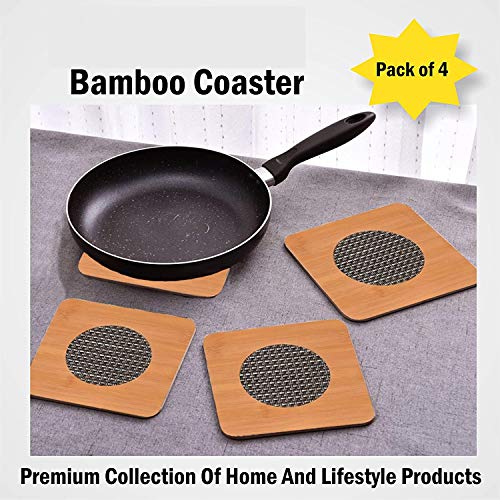 Easymart Square Shape Heating Insulation Resistant Natural Bamboo Wooden Coaster Heat Table Ware Pad Place mat for Hot Coffee,Bowl Tea Cup, Home, Kitchen Dining Pan Pot Holder (Pack of-4)