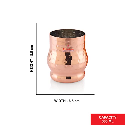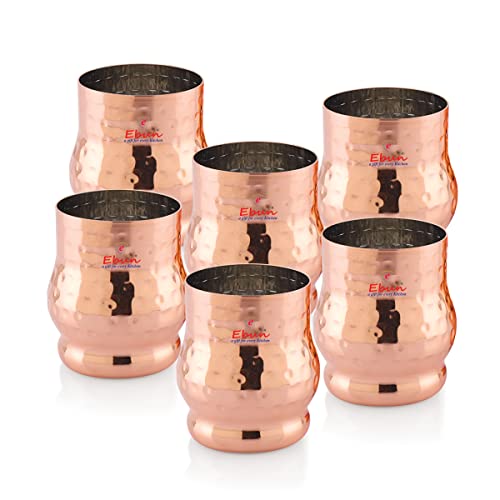 eBun Heavy Gauge Copper Plated Hand Hammered Stainless Steel Glass Set | Steel Glasses Set for Water | Steel Glasses Set of 6 for Water | Stainless Steel Glass Set of 6 | 300 Ml