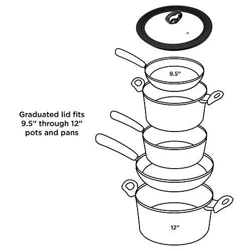 Ecolution Ecolution Universal Pots, Pans and Skillets Vented Tempered Glass, Fits 9.5 inch, 10 inch, 12 inch Cookware, Dishwasher Safe, Replacement Lid, Large, Black