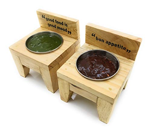EK DO DHAI Wooden Chair Dip Bowl (Natural Brown) – Set of 2