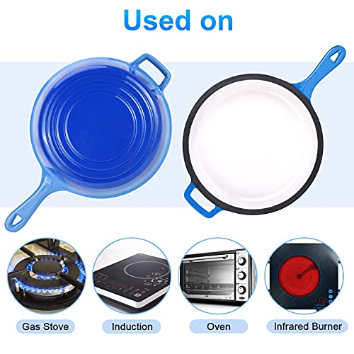 🥦 Enameled 2-in-1 cast iron can be used on gas, electric, ceramic and induction cooktops, and are oven safe to 500 °F, do not use in microwave ovens! Study cast iron construction performs great for both slow cooking and high-temperature searing. Cast iron retains heat efficiently and distributes heat evenly, which makes it has the ability to keep food hot or cool for second servings.