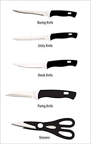 Enzymes Kitchen Knife Set with Wooden Block and Scissors Stand for Home (Black)
