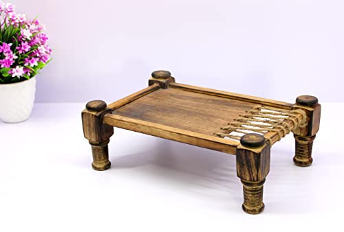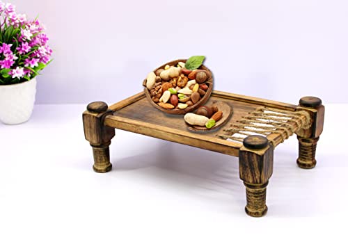 Multinational Serving Cot Charpai Khat serving platter for everyone: could be used as a tea tray, fruit dish or pastry plate. Usage-for wedding banquets, serving cheese, salads, wine, snacks, meals, tea to share quality time with your families and friends; serving drinks, coffee, tea at hotels, bars or coffee shops; simply displaying cherished items and also for creating home decor displays. BEAUTIFUL DESIGN: Crafted of high-quality mango wood with rope and a complete vintage look. Dimensions: L*B*H -11.5 x 7.5 x 3.5 Inch; Material – Seasoned Mango Wood; Color – Brown. Please see the dimension image before making a purchase.
