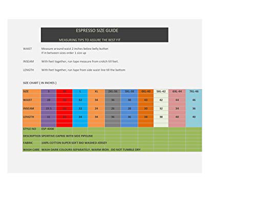 Espresso Women’s Capri Pants are cropped to perfection and feature side line contrast piping for casual appeal and bit of sportive look. All day comfort for casual wearing – Yoga / Sports / Jogging / Gym / Nightwear / Travel etc.,