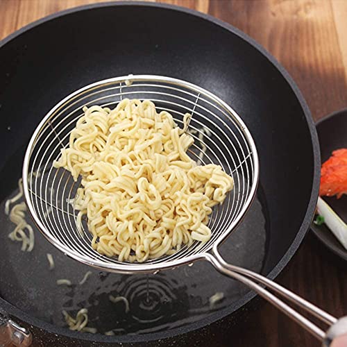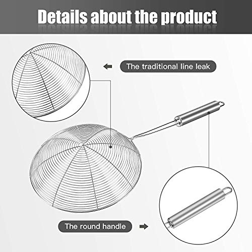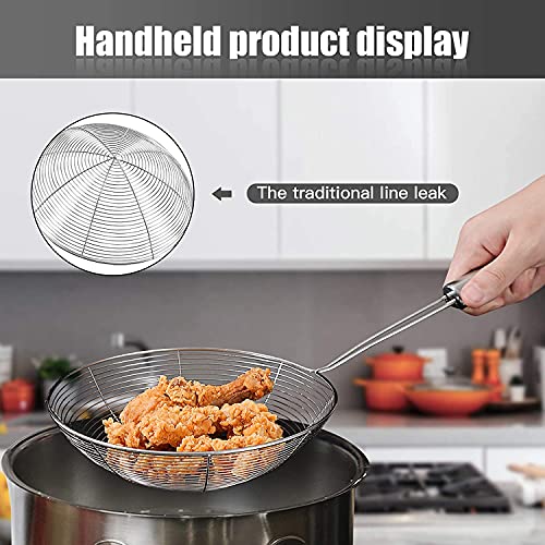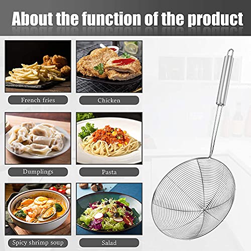 Wire Strainer: The concave net catches food securely while releasing oil and and other residue. Perfect for frying foods, like potato chips, chicken legs, and scoop up noodles, Spaetzle, Pasta, Spaghetti and more.