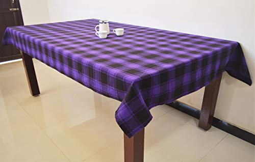 Everyhome – Pure Cotton Brilliant Purple Black Plaided Check Fabric – Dining Table Cloth 8 Seater – Size 60×90 Inches(150x230cm)