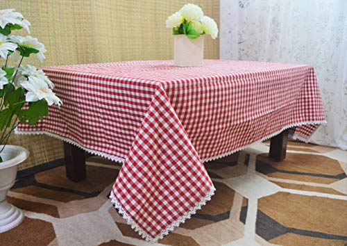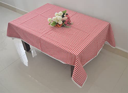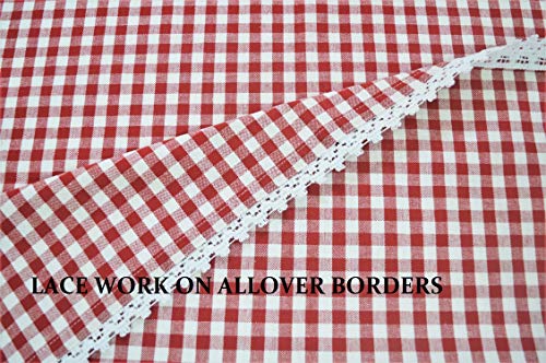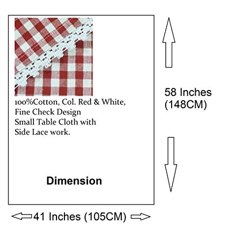 Everyhome – Pure Cotton Fine Red & White Check Design and Beautiful White All Over Lace Work – Small Table Cloth – Size 41×58 Inches (105x148CM)