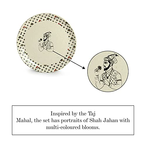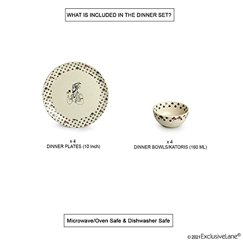 ExclusiveLane ‘Daawat-e-Taj’ Handcrafted 8-Piece Ceramic Plates For Dinner Set With Katoris (4 Dinner Plates, 4 Dinner Katoris, Serving for 4, Dishwasher & Microwave Safe)- Ceramic Bowl Dinnerware Set