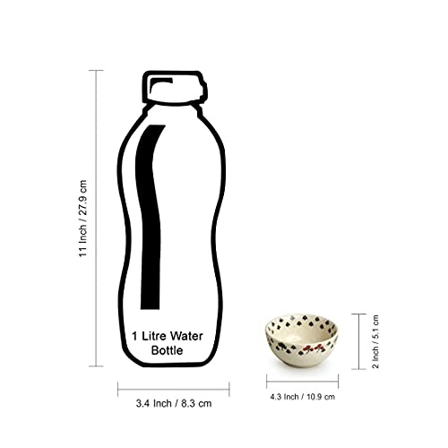 The volume of each katori is 220 ml and Comes in the following dimensions: DINNER PLATES: 10.5″ (L), 10.5″ (W), 1.2″ (H), KATORIS: 4.3″ (L), 4.3″ (W), 2.0″ (H) Inch in size.