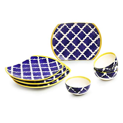 Be the first to review “ExclusiveLane ‘Moroccan Meals’ Hand Painted Microwave Safe Ceramic Plates with Katoris Set (Blue, White, Yellow, 8 Pieces, Serving for 4)”