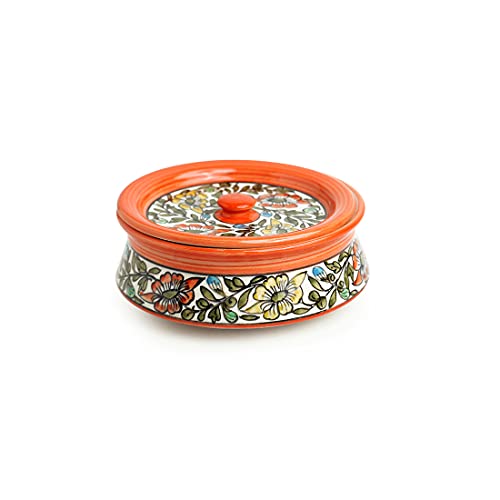 ExclusiveLane ‘Mughal’ Hand-painted Ceramic Serving Handis With Lids (700 ML, Dishwasher & Microwave Safe) – Ceramic Handi Set With Lid For Serving Vegetable Serving Pot Set For Dining Table Serveware