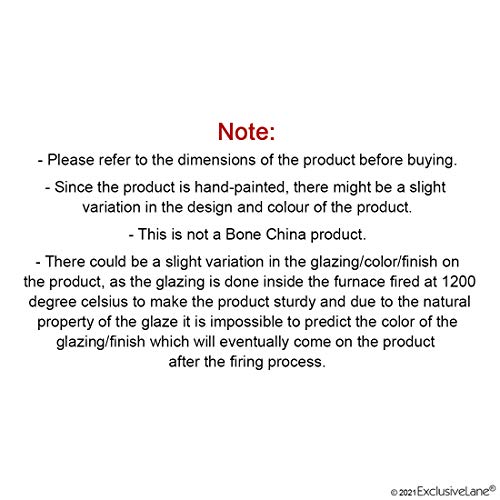 Notes: a) The hand-painting on the ceramic will not wear away. b) This is not a Bone China product. c) As this product is handmade there might be a slight color, shape or design variation, which is natural and hence makes the product unique. d) Does not come with the glass.