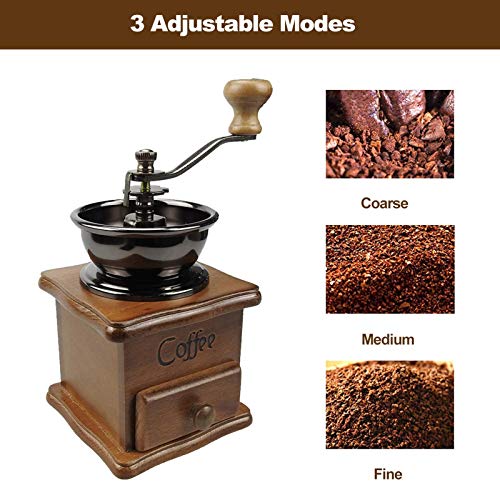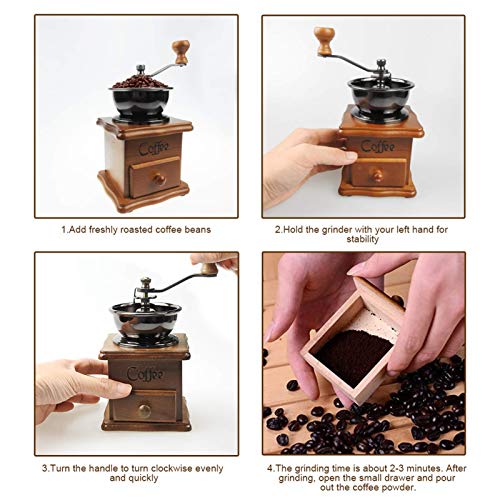 ★【Easy to Use】 The Vintage Manual Coffee Grinder enables to prepare flavorful freshly ground coffee conveniently, fast and without any mess. Simply insert your beans into the grinding compartment, set your desired grind setting and turn your favorite beans into fresh DIY coffee.