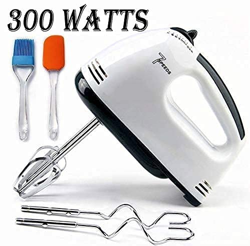 Fadflurry Hand Mixer Powerful 300W Beater with 7 Speed Control & Detachable Stainless-Steel Finish Beater & Whisker With Oil Brush and Spatula Set