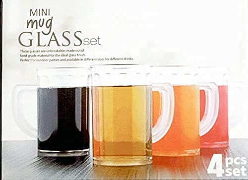 â–şMini Mug 4 Pcs Set 250 ml Unbreakable Heavy Base Clear Plastic Transparent with Tea, Coffee, Beer, Juice Hot and Cold Drinking Mini Mug with Handle Cups Home.