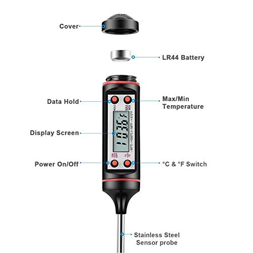 • [WIDE RANGE OF APPLICATIONS]- Can also be used to check temperature for roast meats / soups / deep frying / Barbecue / Food Processing / Baby Food/ / Refrigeration / Brewing / Pharmaceutical / Laboratory / Energy Management / Water / your cappuccinos / lattes and hot chocolate Liquid Grill Oven baking oil etc.