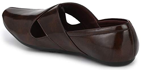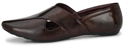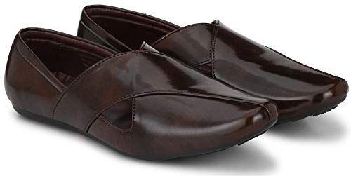 Flooristo Men’s Patent Ethnic Formal Mojaris/Loafer Shoes (8 UK/India, Coffee)