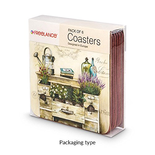 Freelance Wood Hardboard Kitchen & Dining Table Tea Glass Coasters, 10.5 x 10.5 cm, Set of 6