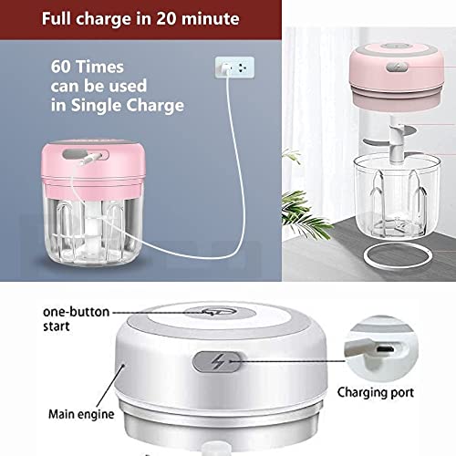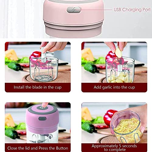 🔋【Portable USB Rechargeable】Our mini garlic chopper is powered by a USB rechargeable (2000mAh battery). It can be used about 35 times after fully charging.