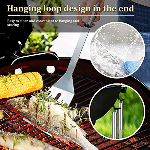 【Portable and convenient design】All the stainless steel bbq set stored in portable oxford cloth case in order, ensure each tool is neatly organized. The grilling tools has metal hanging loops for convenience and easy storage around your grill or kitchen when not in use. You can easily take it anywhere, and it is perfect for outdoor barbecue, picnic, travel, weekenders, camping, or barbecue chef.