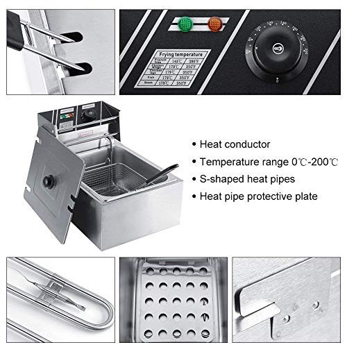 Stainless steel body deep fryer machine for home and commercial applications .Thermostat for accurate temperature setting . Lid cover for preventing the boil oil splashing . Fryer basket with plastic handle to prevent scald . Residue plate for filtering out the dregs