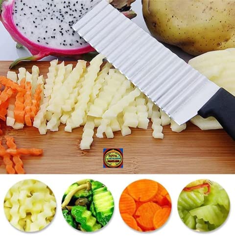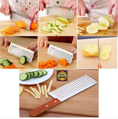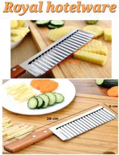 Royal hotelware Zig zag wavy knife Grater can be use for cutting Fruits, carrot reddish potato cheese ginger and many vegetables to make delicious dishes You can quickly cut the salad Slices lemons, potatoes onion, all kinds of fruits and vegetables blades makes wavy wafers of potatoes The sharp blades This vegetable slicer will last you for a long time, thanks to its stainless steel make. The material is safe to use in the kitchen Works great with potatoes This intelligently designed kitchen tool saves time as one can easily and quickly grate and slice large Very handy to use and maintain