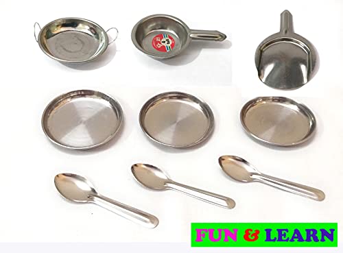 Material: Stainless Steel and Plastic. kitchen set for kids. miniature kitchen set for real cooking food. It’s Miniature cooking set Stainless Steel Utensils Role kitchen set steel Play Toy for kids.