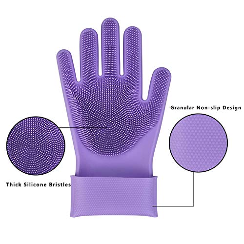 [MAKES DISHWASHING EASIER AND SAFER]: Protect your wife from Cleaning harm. [Antibacterial dish scrubbers]. The scrubbers are made of food grade silicone, which is naturally antibacterial since it is not porous like regular sponges and cloths are. With these silicone dish scrubbers, no more stinky bacteria-laden sponges!