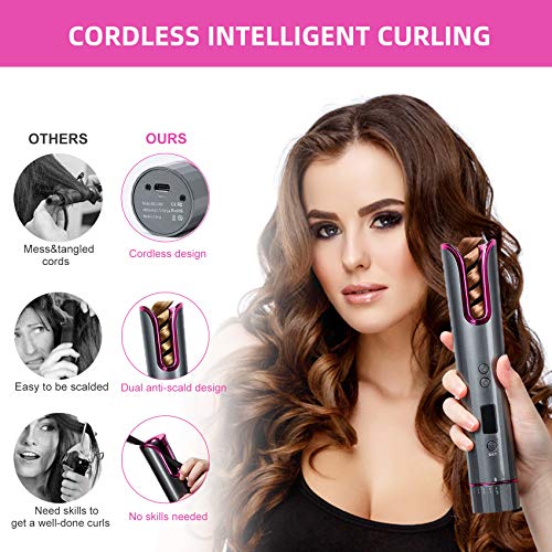 EASY USE: Say goodbye to the tangled cable design! Our cordless hair curler with 4800mAh high battery-capacity can work for up to 60mins when fully charged. With UBS charging, you can make your curls anywhere. Intelligent curling makes it easier to have perfect curls even you’ve never used the curler before.