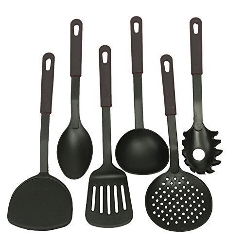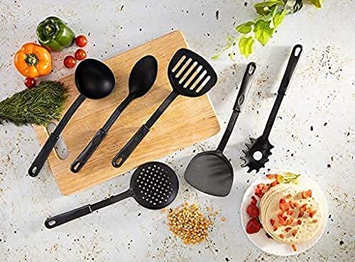 GaxQuly 6 Pcs/Set Nylon Heat-Resistant Plastic Spoon Spatula Turner Scoop Kitchen Cooking Utensil Tools Set(Black Color, 1 Set)