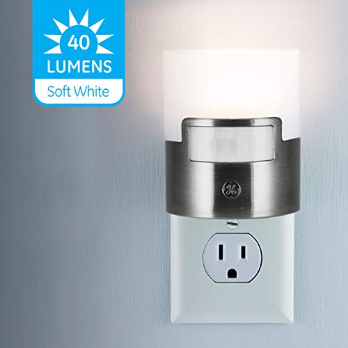 GE Enbrighten LED Night Light, Motion Sensor, 2 Pack, Plug-in, 40 Lumens, Soft White, UL Listed, Ideal for Bedroom, Nursery, Bathroom, Kitchen, Hallway, Brushed Nickel, 43665, 2 Count